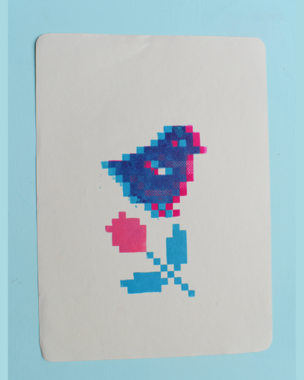 PAJARITO y rosa - Monocopia - paleta mixta