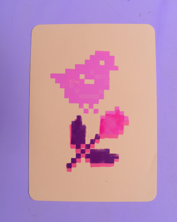 Cada pieza es única e irrepetible: el desplazamiento de la reimpresión, la presión manual y el registro hacen que no existan dos iguales.
